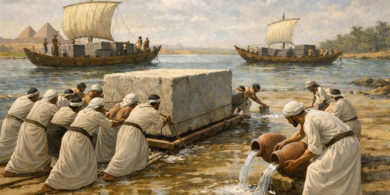 Sledges on Sand: Workers dragged stones on sledges, pouring water on sand to reduce friction—a technique confirmed by modern experiments.
